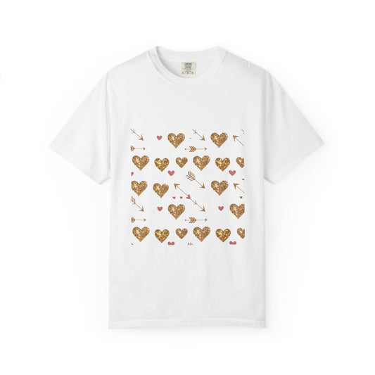 Gold Heart Pattern Women T-Shirt - Perfect for Everyday Love