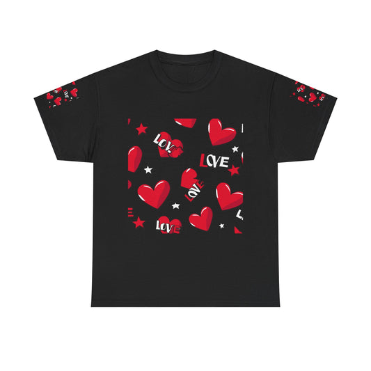 Romantic Love Heart Heavy Cotton Tee - Perfect for Everyday Wear