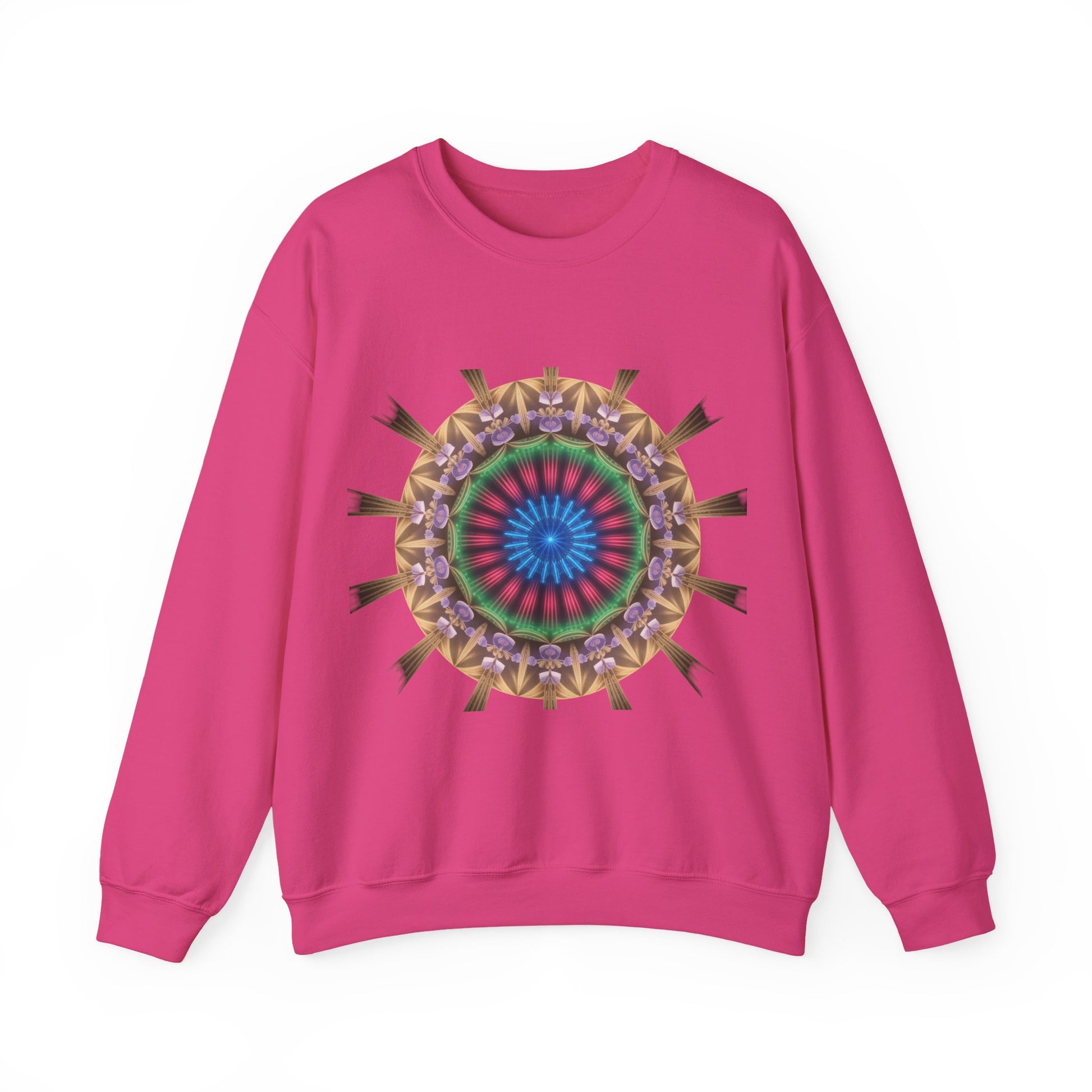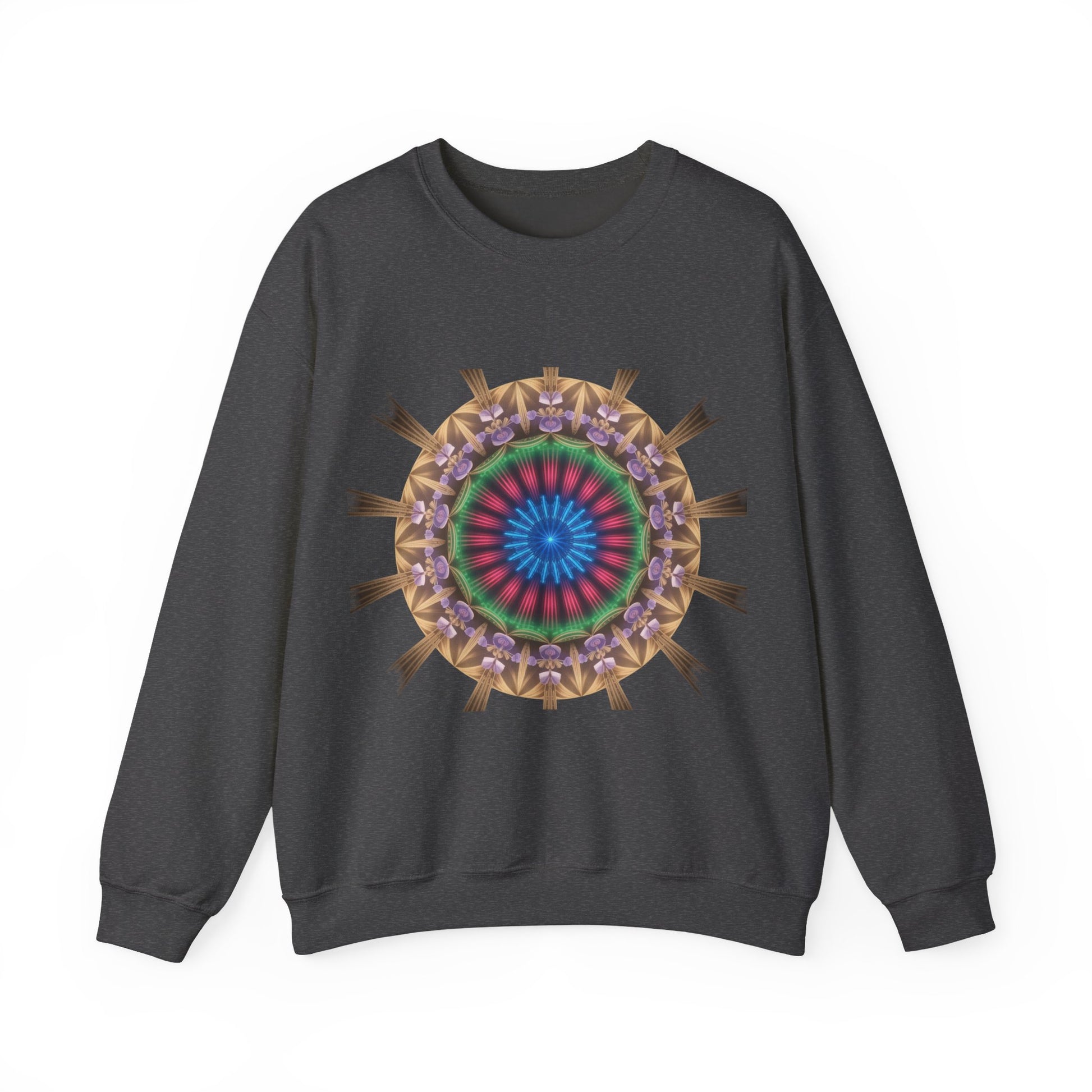Wrap yourself in cozy warmth with this Heavy Blend™ Crewneck Sweatshirt. The vibrant, kaleidoscopic design adds a splash of artistic flair to any outfit, making it a perfect statement piece for casual outings or relaxing at home. Ideal for chilly evenings, this sweatshirt offers a comforting fit that complements your laid-back style. Whether you're lounging by the fire, heading to a gathering, or celebrating festive seasons, it’s versatile enough to suit all occasions. Perfect for art lovers, casual wear enthusiasts, or anyone wanting to add a unique item to their wardrobe. Gift it for holidays like Thanksgiving, Christmas, or as a thoughtful birthday surprise!