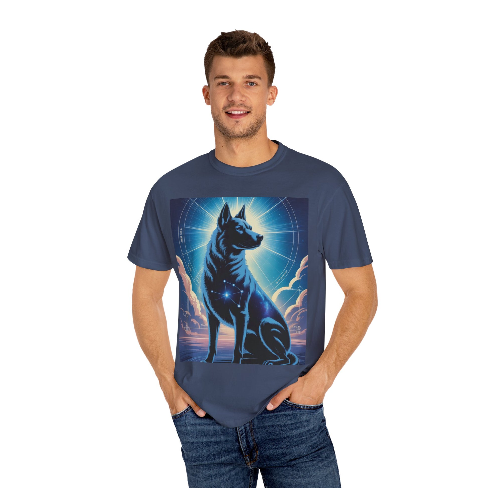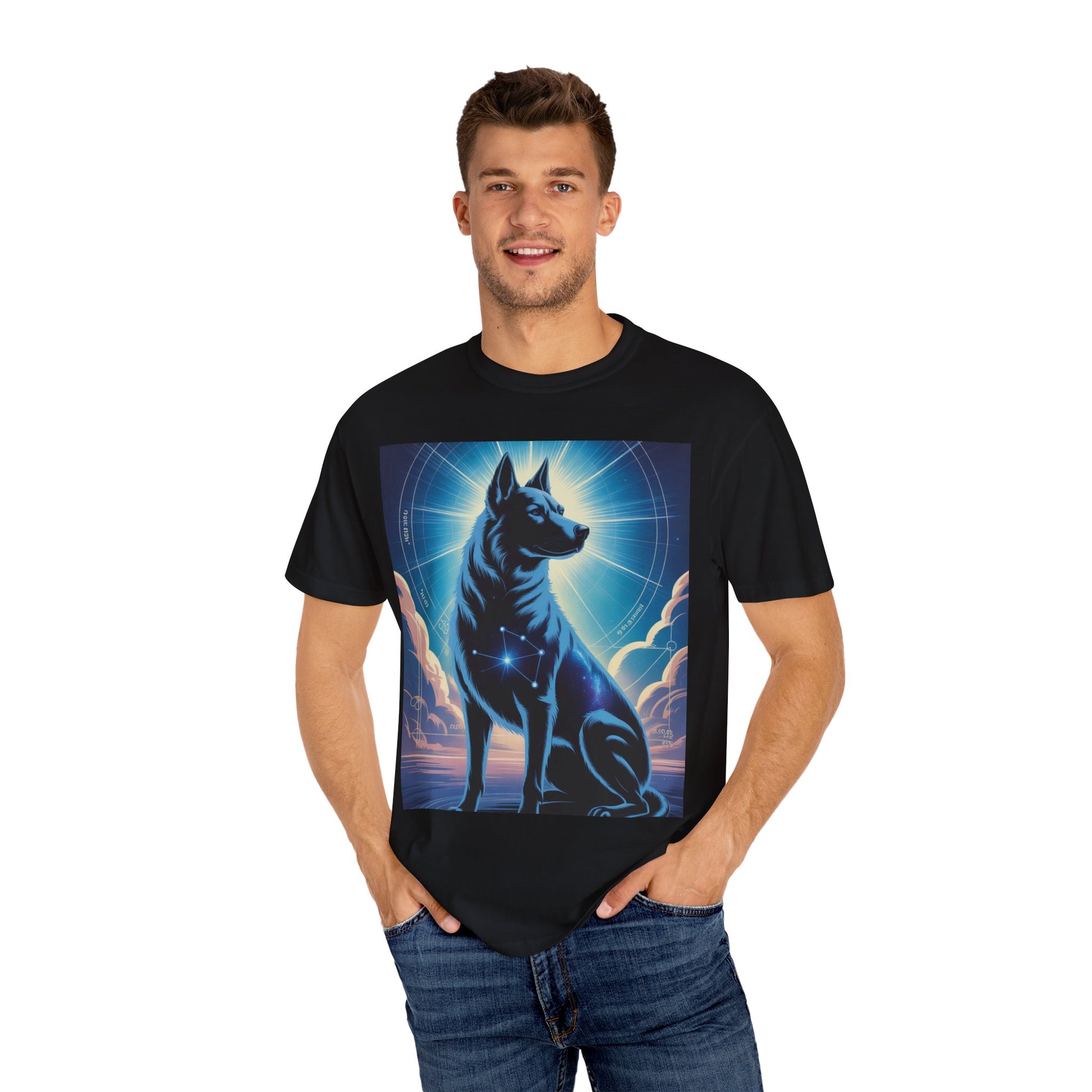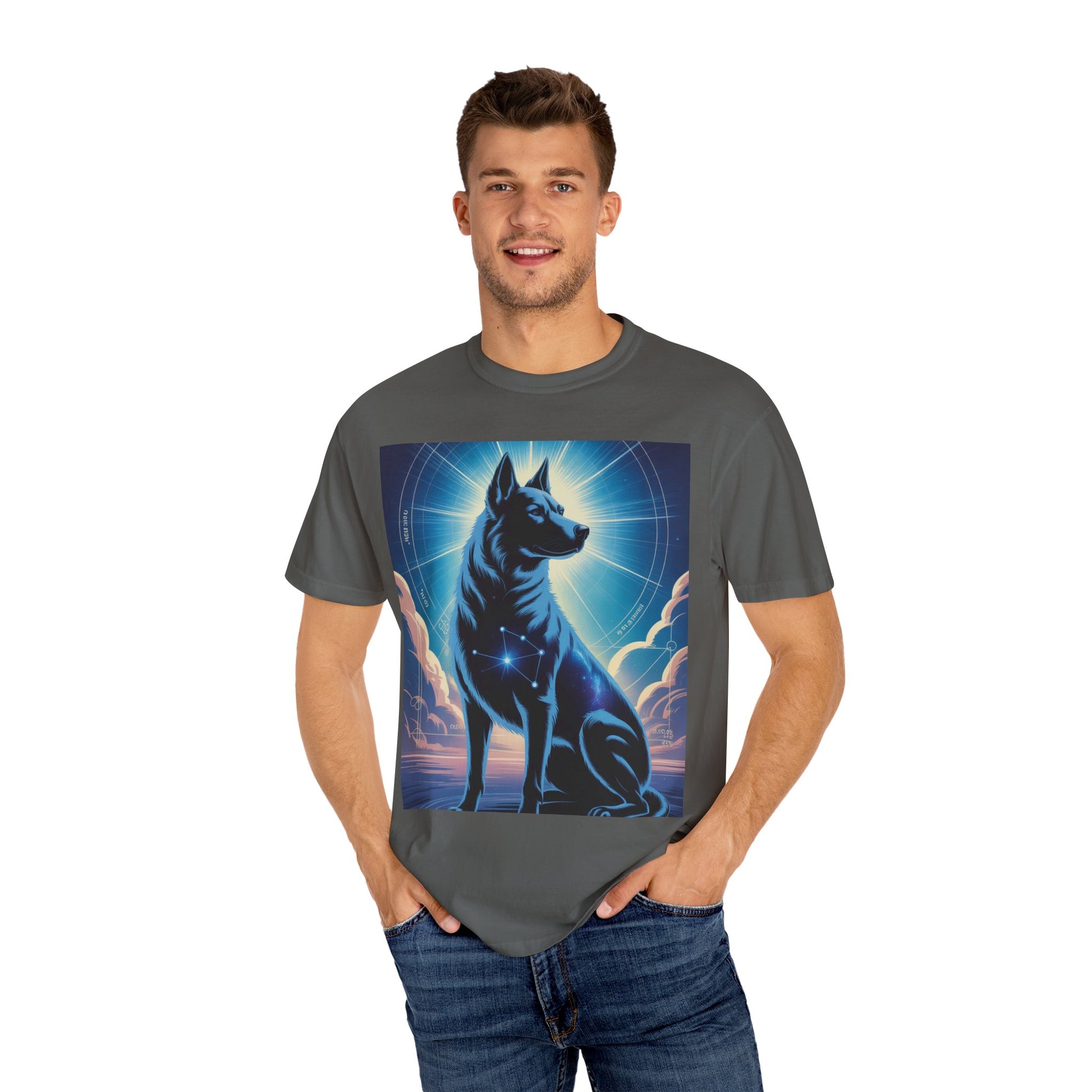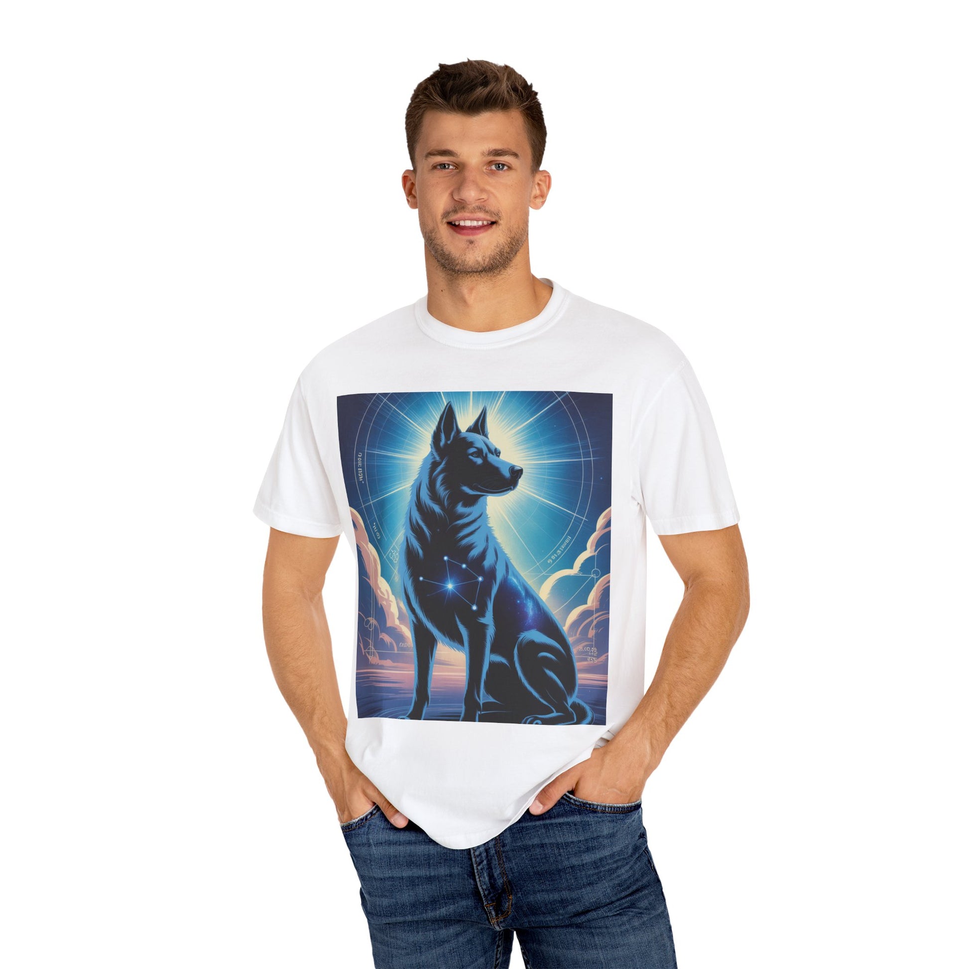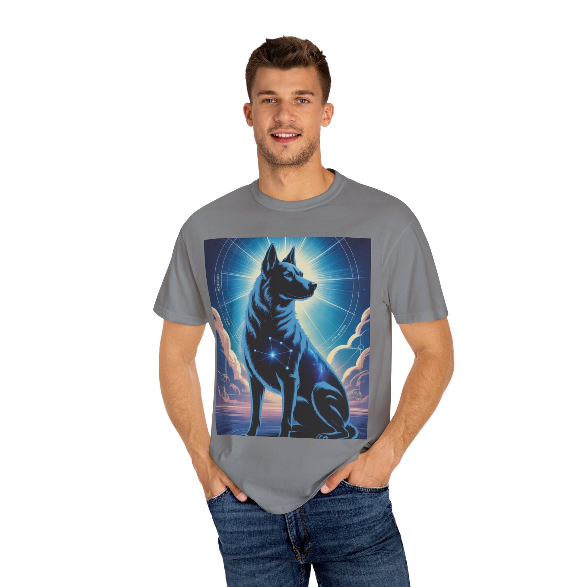 Cosmic Canine Men's T-shirt | Starry Dog Graphic Tee, Animal Lover Gift, Soft Cotton Top, Casual Wear, Unique Pet Shirt