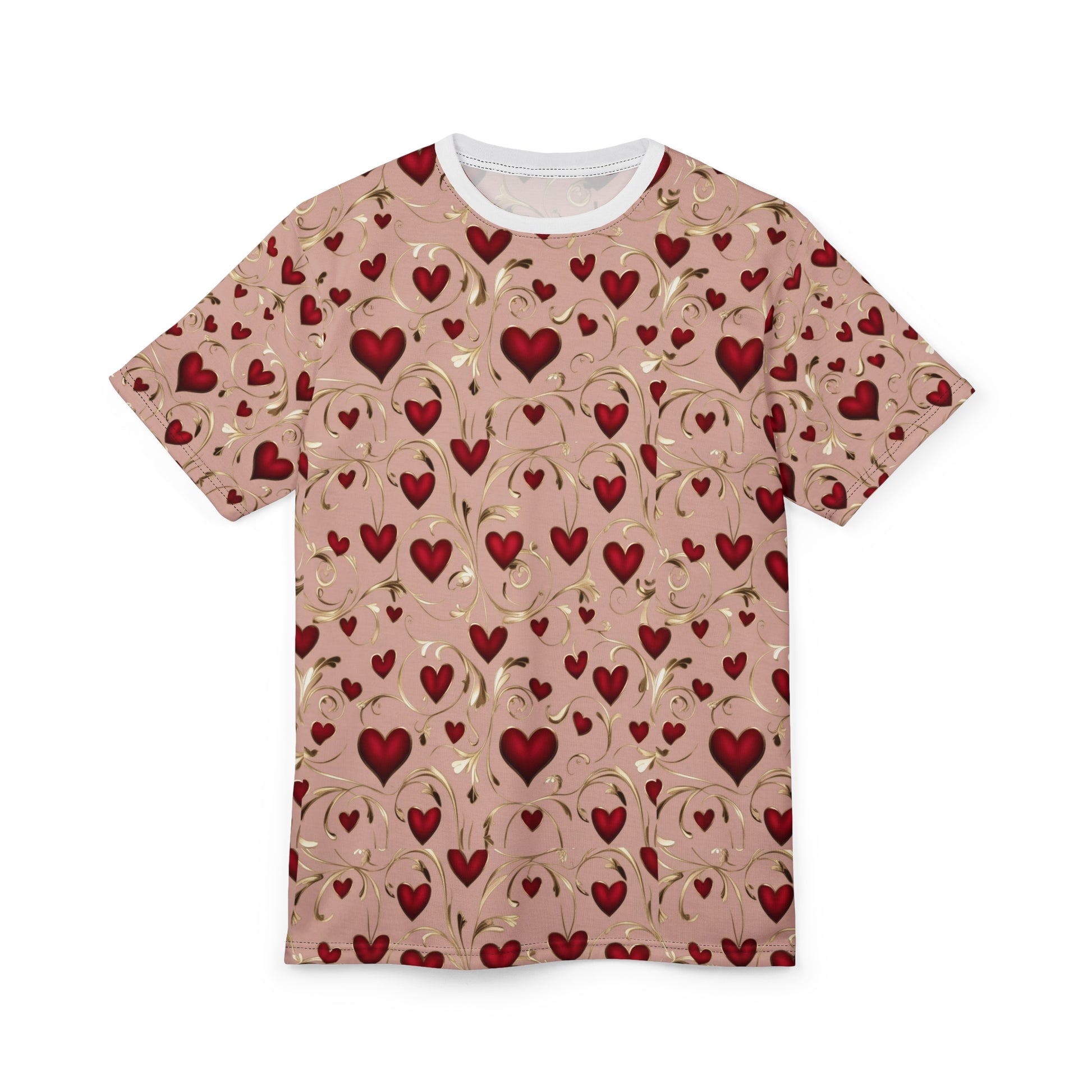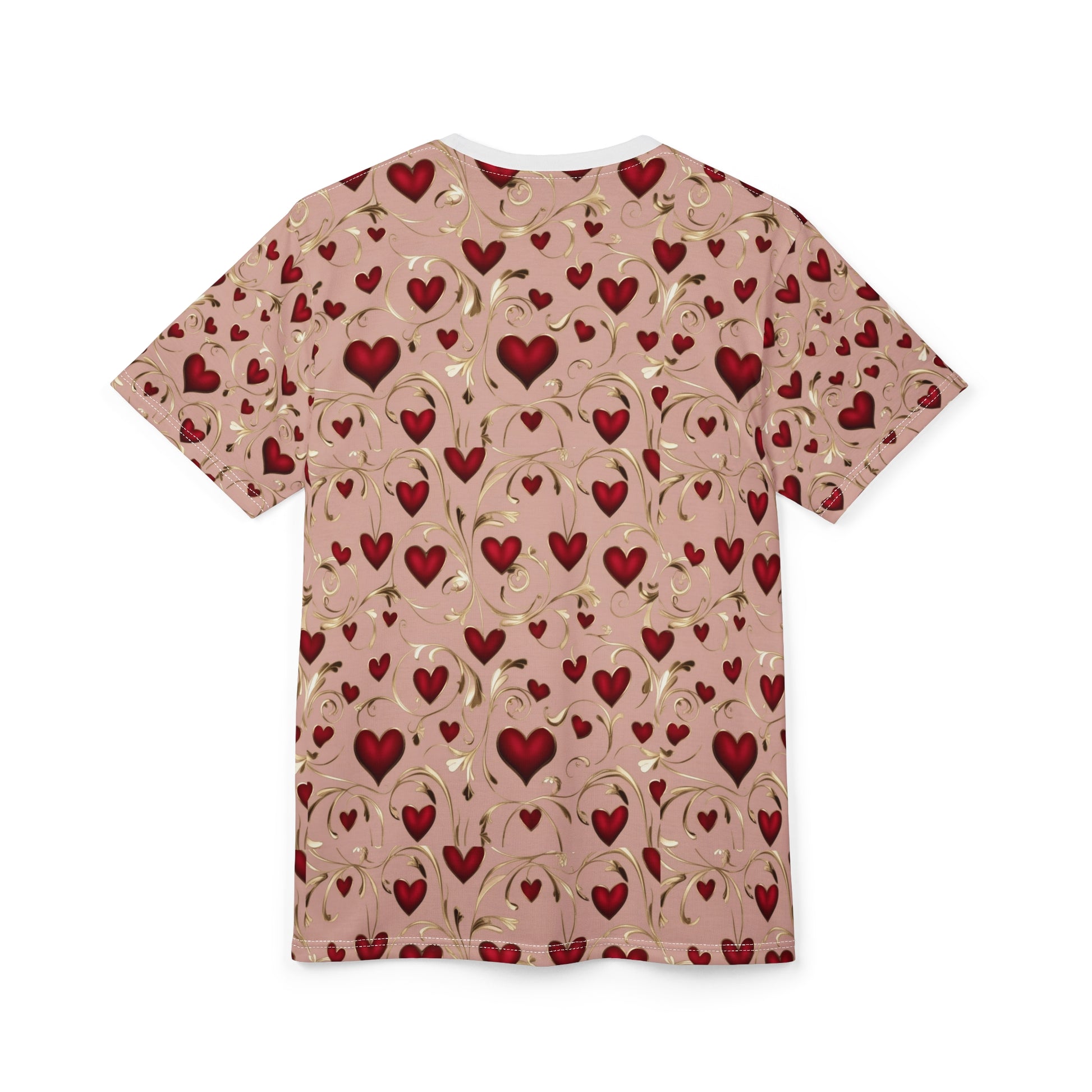 Tee, designed for comfort and versatility. This eye-catching tee features a beautiful pattern of red hearts, perfect for expressing love and warmth. Ideal for casual outings, parties, or cozy nights in, it elevates any outfit effortlessly. Whether you're celebrating Valentine's Day, anniversaries, or just want to show some love, this shirt is a fantastic choice for individuals seeking both comfort and style. Great gift for loved ones or a treat for yourself, this tee fits seamlessly into your everyday wardrobe, bringing a vibrant touch to any occasion.